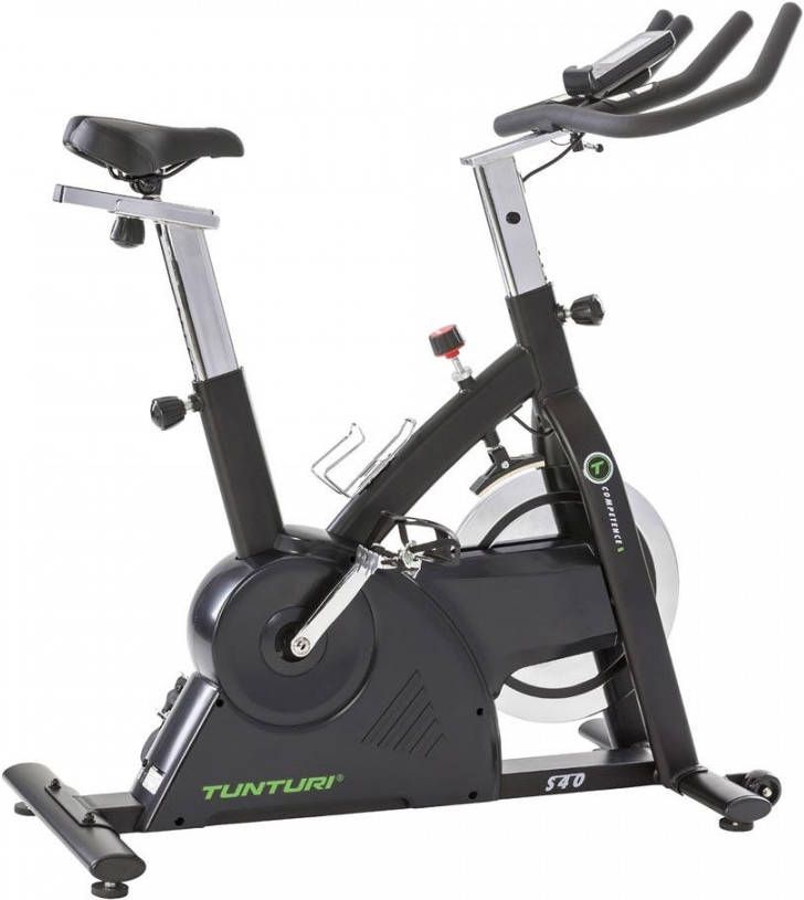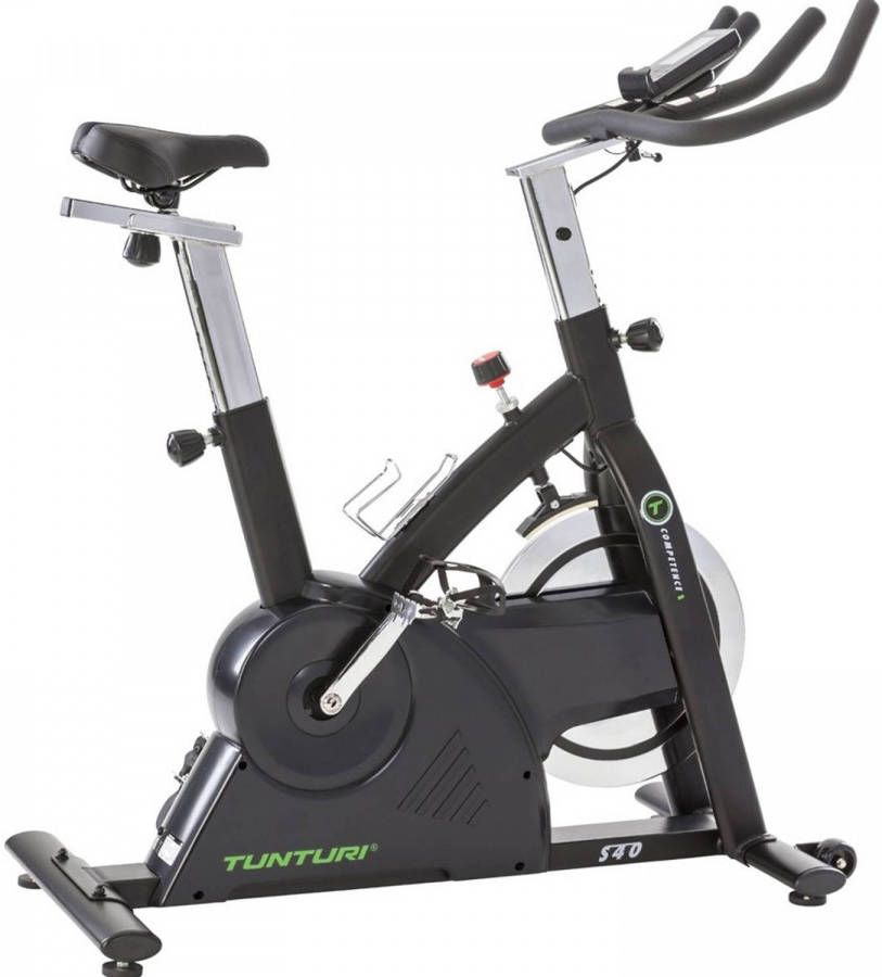 Sprint thuis met de S40 Sprinter Bike uit de Tunturi Competence collectie. Met deze robuuste fiets met stevig frame, groot en zwaar vliegwiel ga je voor de ultieme uitdaging.De voordelen van de Tunturi Competence S40 Sprinter bike- Ergonomisch trainen- Makkelijk te verplaatsen- 32 weerstandsniveaus, 12 programmas- Handige houder voor tablet of smartphone- Monitor met weergave van verschillende parametersErgonomisch in conditieHet zadel en het stuur stel je zowel verticaal als horizontaal in. De pedalen hebben voetriemen zodat je je voeten stabiel houdt tijdens het trappen en met de bidonhouder heb je steeds voldoende water of sportdrank bij de hand. Ga niet over je grenzen: hou je hartslag in de gaten via de handsensoren of via de draadloze hartslag ontvanger. Op de monitor (5,5 inch) volg je de belangrijkste parameters: tijd, snelheid, afstand, cadans en hartslag. Daarnaast lees je ook het aantal verbruikte calorieën af.Work-out op maatMet roterende massa van 17 kg ontwikkel je steeds voldoende vermogen. Kies uit de 32 weerstandsniveaus of volg één van de 12 programmas. Met de transportwielen train je waar je wilt en verplaats je de hometrainer moeiteloos. Handig toch?Tablet supportFietsen op de hometrainer saai? Kijk tijdens je work-out naar je favoriete serie of een goeie film. Bovenop de monitor zit een houder waar je je tabletof smartphone plaatst.Overzicht specificaties:Afmetingen L: 110 cm. B: 52 cm. H: 120 cm.Maximaal belastbaar gewicht: 150 kgRoterende massa: 17 kgBorstband mogelijk (5 5.4 Khz)Transportwielen en bidonhouderGewicht: 49 kgTunturi Routes Tunturi Routes brengt het plezier terug in je cardiotraining. Fiets, kruis, ren en roei over de hele wereld met behulp van duizenden video's. Verander uw training in een nieuwe, visuele en meeslepende ervaring. Details Tunturi Routes Een visuele / meeslepende trainingservaring Fiets, cross, ren en roei over de hele wereld Tienduizenden video's ( 9,99 p / m) Altijd 15 video's in de gratis versie van de app Doe mee aan uitdagingen Coachinglessen vanuit huis Trainingsprofielen uitbreiden op uw cardio-apparatuur Gratis maand CycleMastersBij aankoop van deze spinbike krijg je 1 maand gratis sporten met CycleMasters cadeau. Na aanschaf ontvang je per mail een unieke actiecode die je kunt gebruiken bij aanmelding op de website van CycleMasters. De korting wordt dan automatisch toegepast.Beklim met CycleMasters de mooiste bergen in Frankrijk en Italië, neem deel aan een studio les op vette muziek, of aan een Beat Ride les waarbij je op de beat van de muziek niet alleen fietst, maar een full-body workout doet. Er zijn lessen voor beginners tot gevorderden, van HIIT trainingen van 20 minuten tot endurance trainingen van 90 minuten lang. De bekende trainers motiveren je en zorgen ervoor dat je altijd het maximale uit je training haalt. Meer informatie over CycleMasters vind je in onze blog.